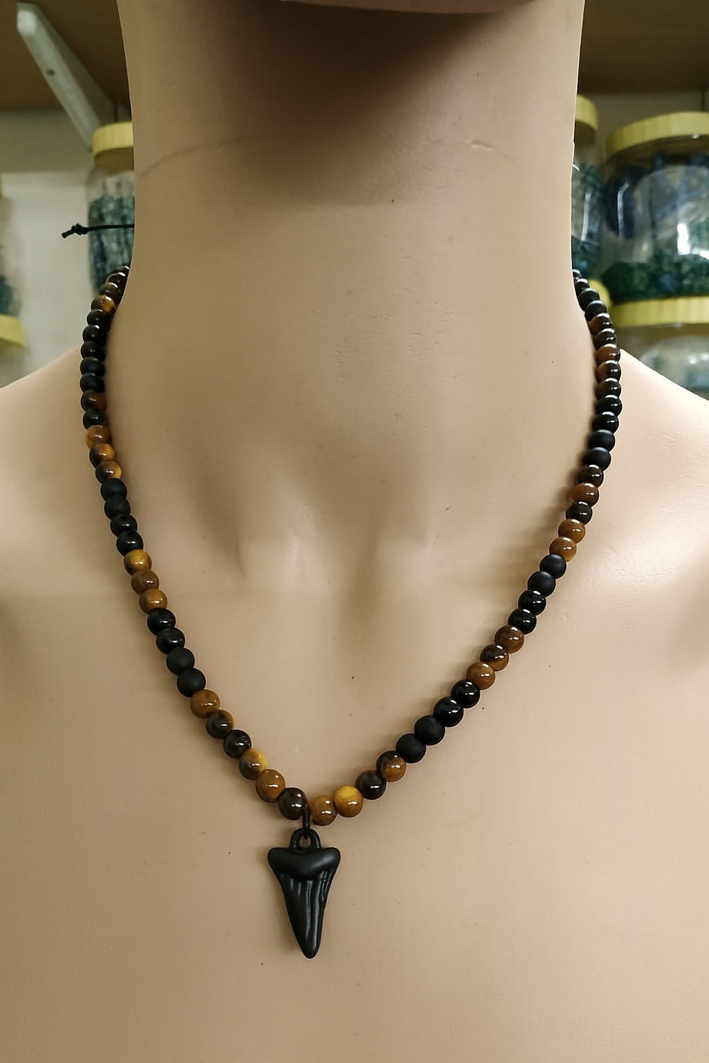 Be the first to review “Tiger Eye Beads Necklace with Shark Tooth Pendant”